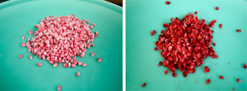 覆盆子融化前后。在融化之前不要嘗試吃它們,但要確保在它們結(jié)實(shí)的時(shí)候?qū)⑺鼈冨兩?。融化的是脆弱的?/p>