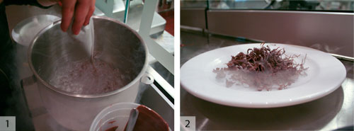 我要向您展示的zui后一項(xiàng)技術(shù)當(dāng)前在我們朋友Jean Jeans餐廳的Johnny Iuzzini的菜單上。他用短號(hào)將巧克力倒入液氮,從而制作出巧克力的花式和樹(shù)枝狀。