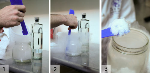冷卻液。1)從液氮開(kāi)始,倒入液體。2)劇烈攪拌直至霧氣消散。3)瞧!