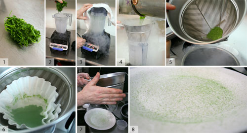 粉狀的新鮮藥草。這項(xiàng)技術(shù)可以使您的粉末與任何干草藥一樣細(xì),但又新鮮。它看起來(lái)很棒,氣味很香,味道也很香。這是均勻涂抹草藥混合物的zui佳方法。1)用開(kāi)水將草藥燙一下,否則它們會(huì)變黑。擠出多余的水。2)用液氮至少將Vita-Prep投手裝滿(mǎn)。帶有濕刀片的大水罐不能很好地解決這個(gè)問(wèn)題,因?yàn)楫a(chǎn)品會(huì)四處噴灑。帶有干燥刀片的較小的水罐永遠(yuǎn)不會(huì)造成問(wèn)題。將草藥放入水罐中,使其冷凍。3)蓋上并融合,緩慢地朝著高速前進(jìn)。添加液氮后,請(qǐng)勿等待太久才能打開(kāi)攪拌機(jī),否則軸承會(huì)發(fā)出可怕的聲音。4)將混合物倒入湯鍋中。5)殘留在中G的東西對(duì)我們來(lái)說(shuō)太粗糙了。將其放回投手進(jìn)行下一輪比賽。6)通過(guò)咖啡過(guò)濾器將混合物倒入鍋中。這是好東西。7)將粉末放入中G風(fēng),然后將其輕拍到您的盤(pán)子上-在粉末仍冷凍的情況下進(jìn)行。您也可以將這些東西折成鮮奶油,土豆泥等。記住,隨著香草的融化,香氣和味道會(huì)急劇增加。不要過(guò)分。8)解凍。