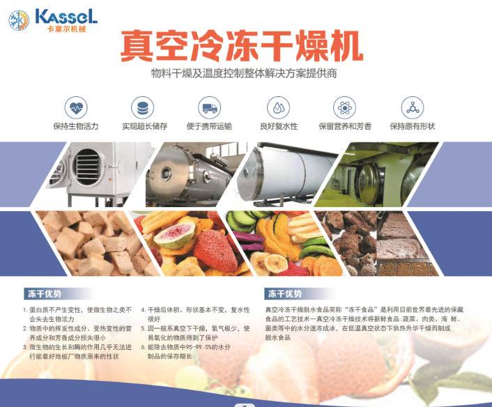 卡塞爾機(jī)械(浙江)有限公司為卡塞爾集團(tuán)成員企業(yè),是一家專業(yè)提供真空冷凍干燥設(shè)備整體方案的供應(yīng)商:以“凍干機(jī)”為核心產(chǎn)品,形成了針對(duì)果蔬、肉類(寵物食品)、速溶方便食品(凍干粉)、美容及生物制品、實(shí)驗(yàn)室凍干、家用凍干及其它等七大凍干產(chǎn)品生產(chǎn)線的針對(duì)性解決方案,讓低成本、高效率、多用途的一站式凍干服務(wù)成為可能。